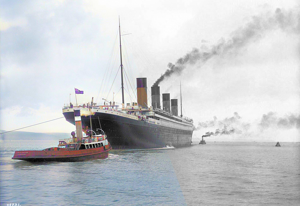 1912, Belfast Lough (Wikimedia Commons File:RMS_Titanic_2.jpg)